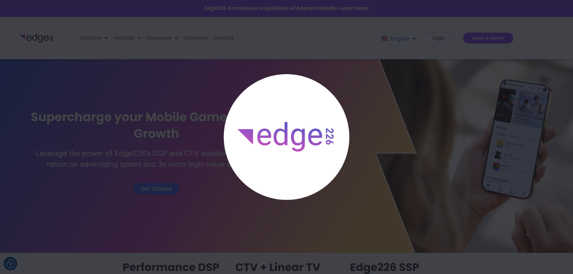 Desarrollo web para la empresa de marketing digital especializada en performance mobile llamada Edge226, que usa tecnología impulsada por IA para adquirir usuarios en apps y televisión conectada (CTV).